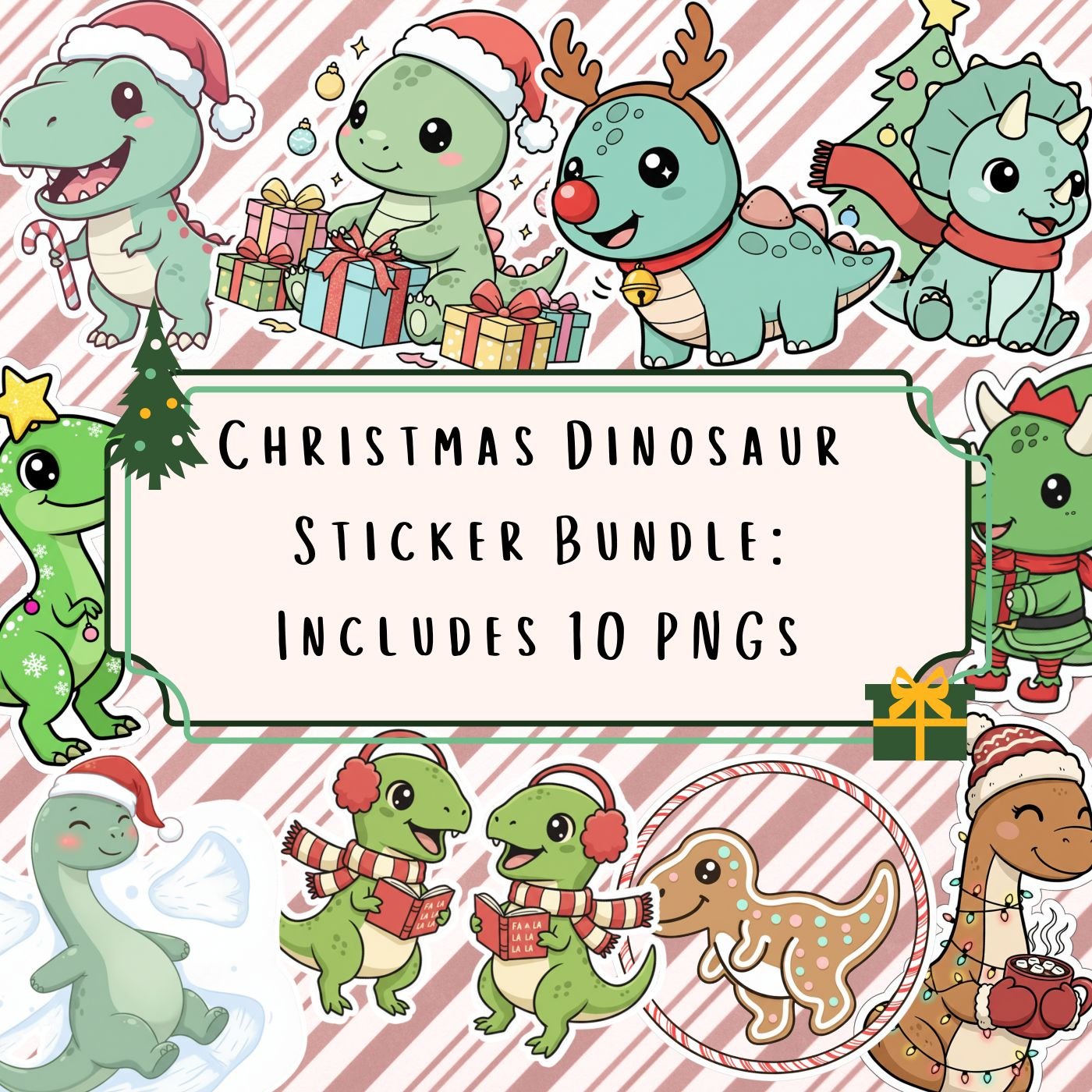 Christmas Dinosaur Sticker Bundle | Dino PNGs for Sublimation & Crafts