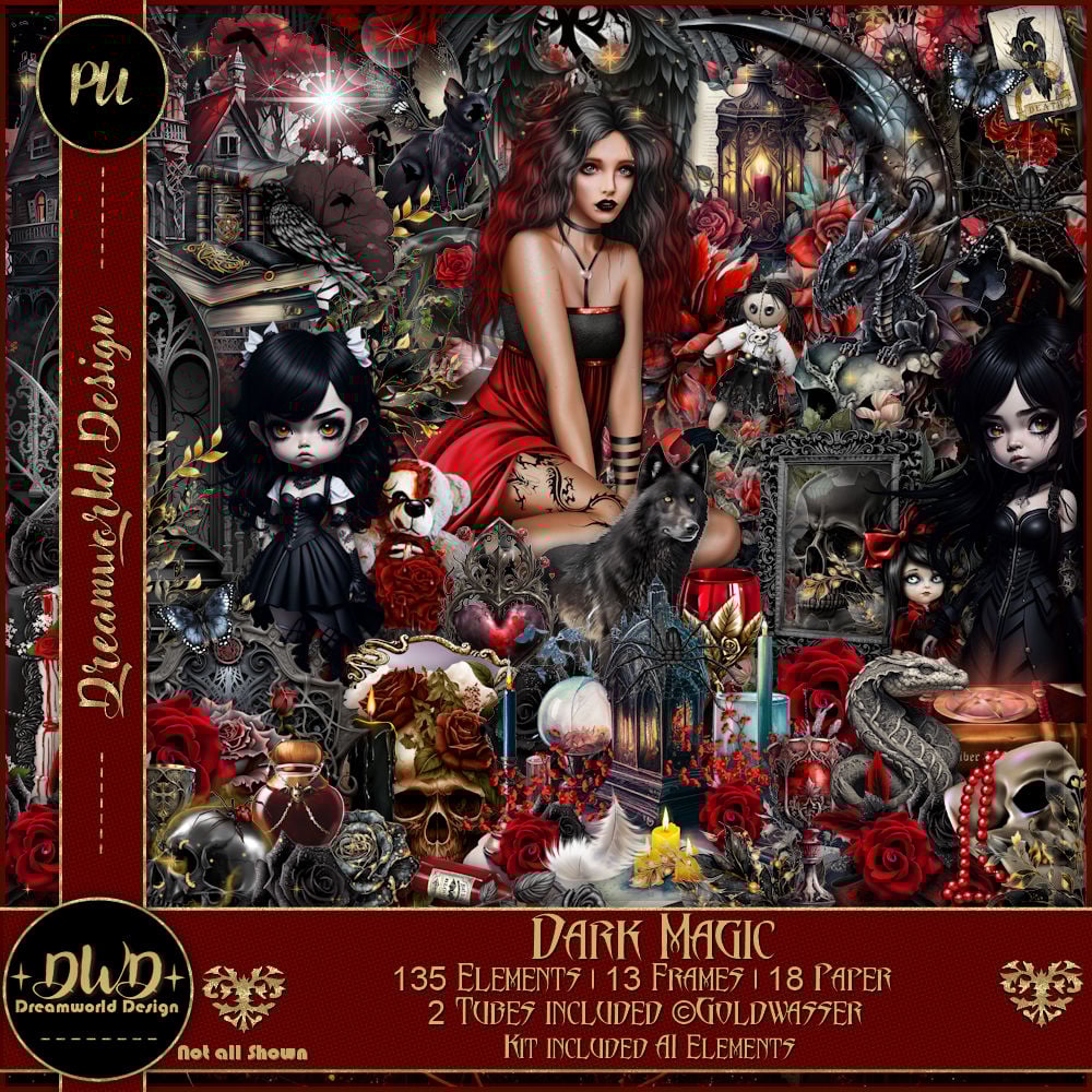 *Dark Magic* is a tagger-size kit with 135 elements, 13 frames and 18 papers.