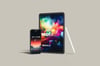 Apple device mockups bundle for application use, web design that contains multiple scenes in different angles. Devices with customizable colours, shadows and smart objects. You can use it for social media posts like Instagram to spice up your portfolio on your website, or for Behance and Dribbble projects. Also can be used for printing due to high resolution.