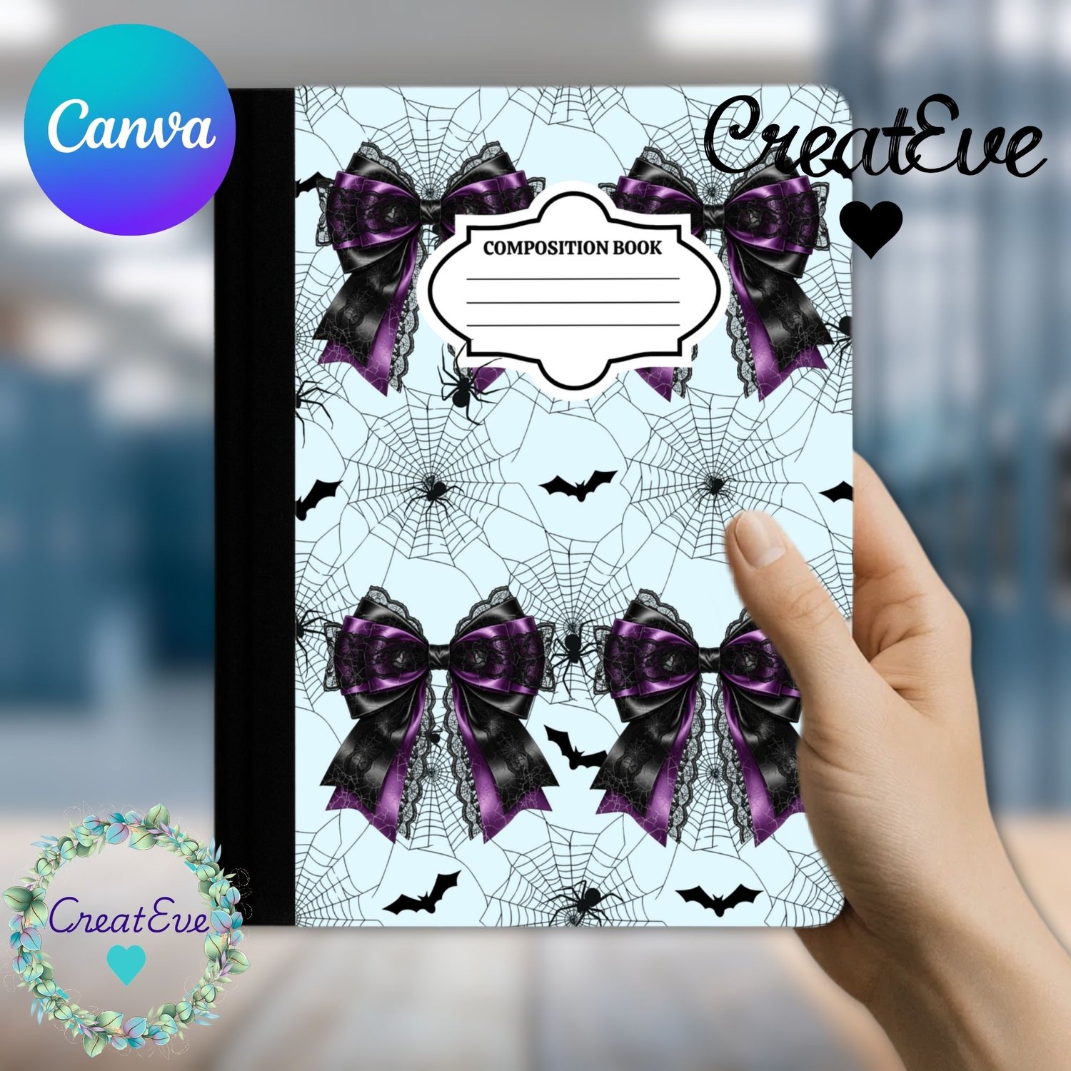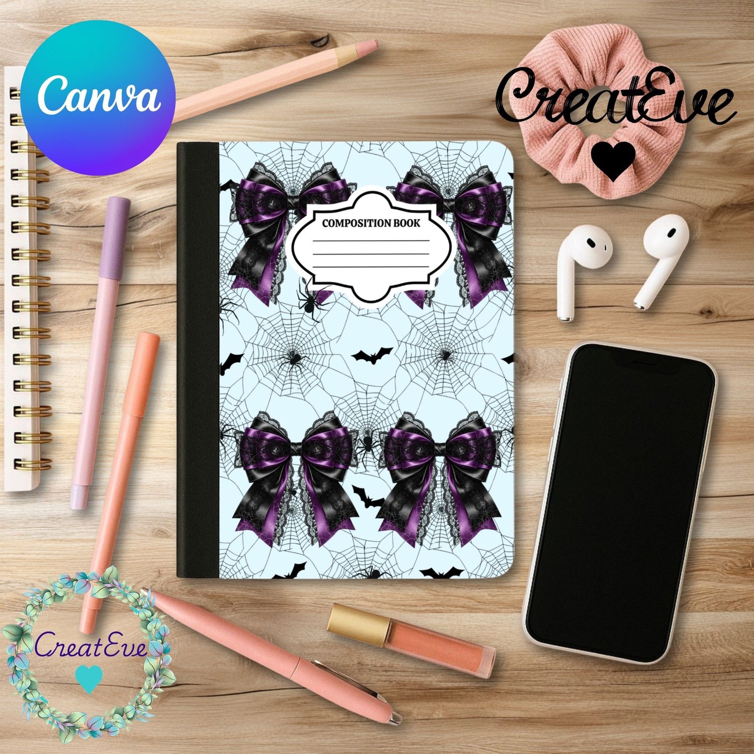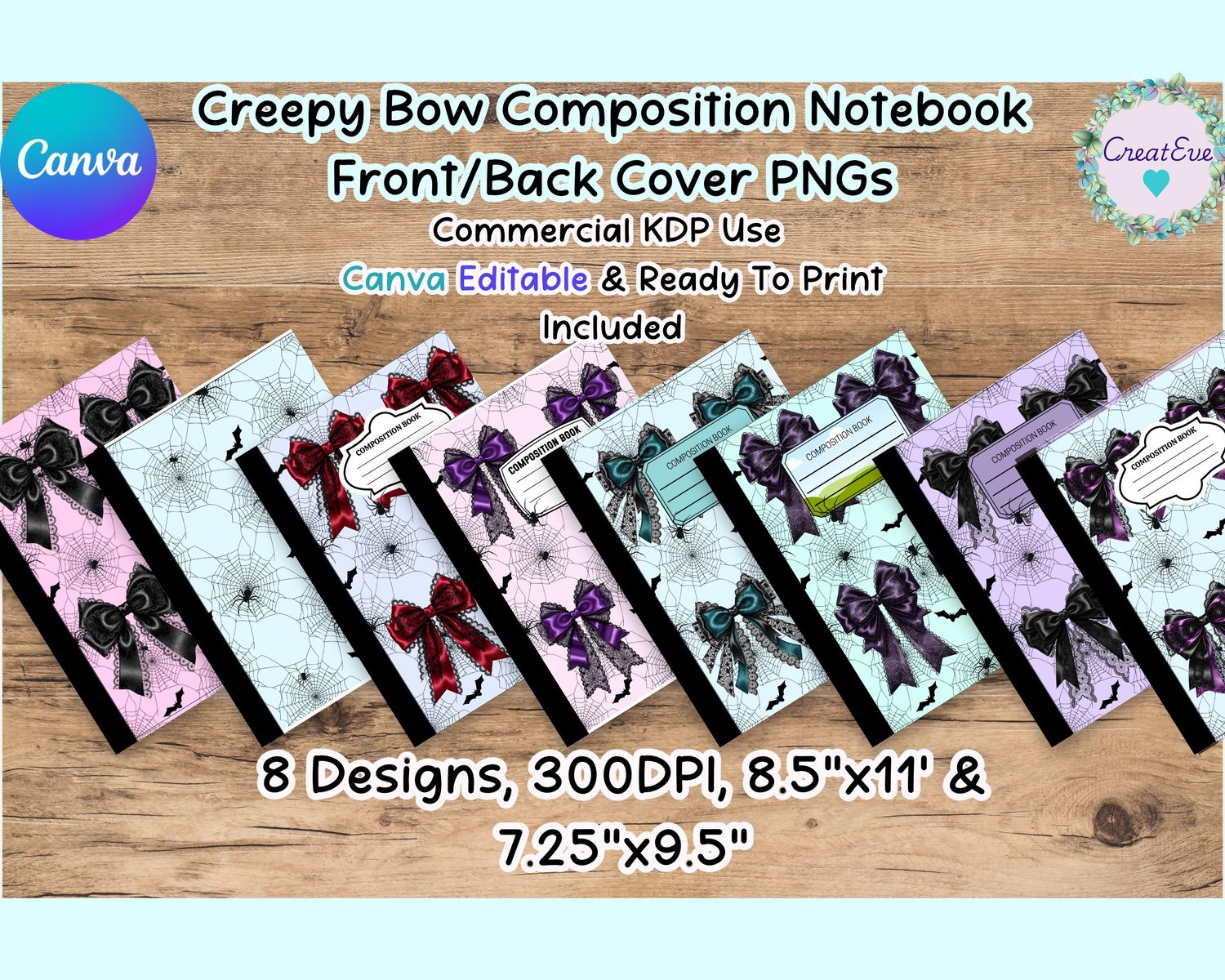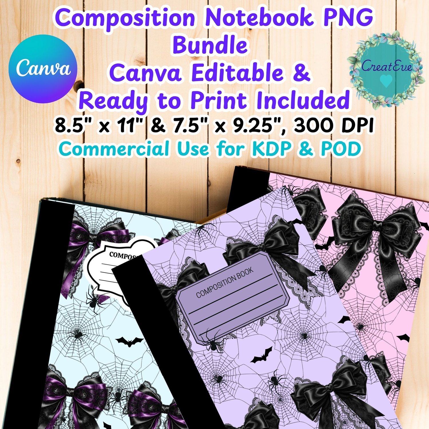 Creepy Cute Goth Composition Notebook Canva Editable & Ready to Print 8 Design PNG Bundle