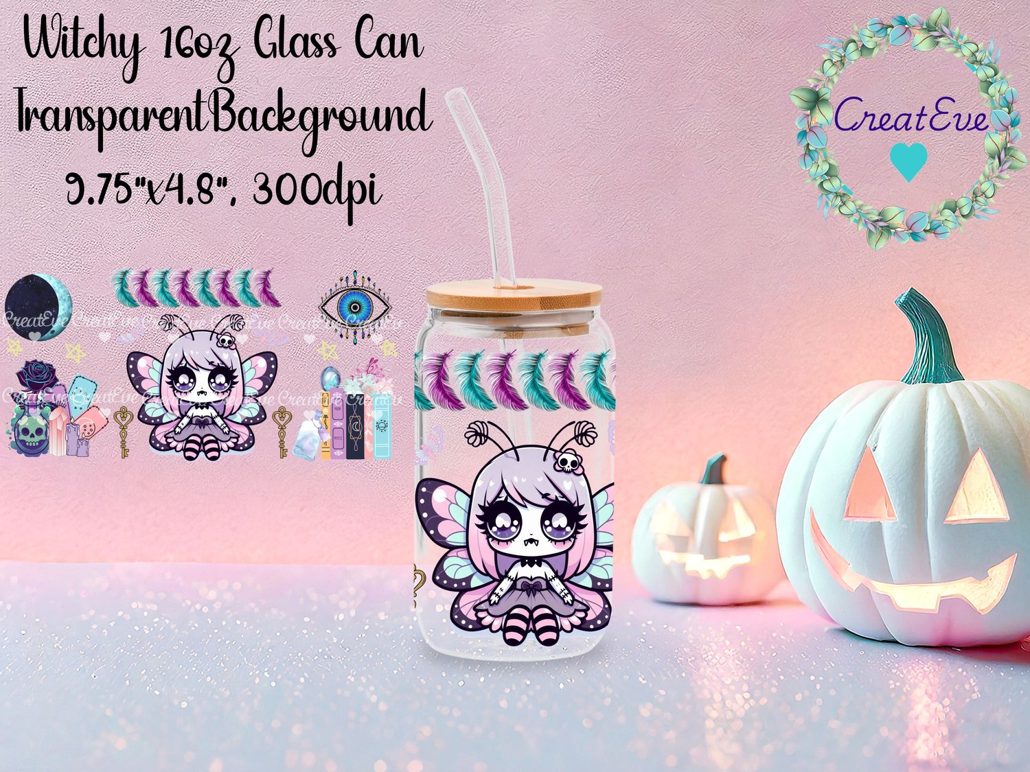 Witchy Emo Chibi Fairy 16oz Libbey Glass Can Wrap