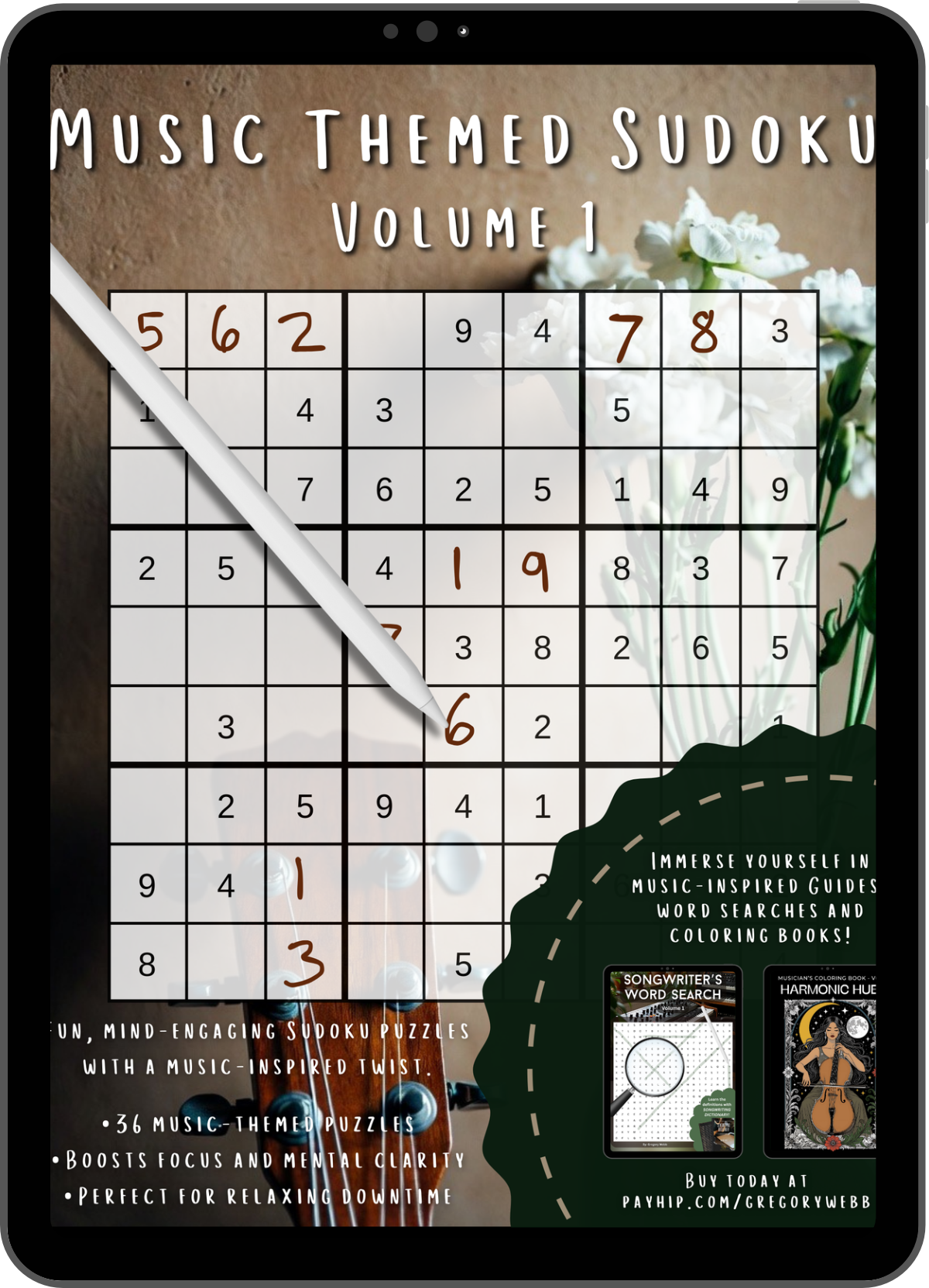 Challenge your mind and celebrate your love for music with Music Themed Sudoku – Volume 1. This digital 36-page puzzle book combines classic Sudoku logic with music-inspired designs, creating a relaxing and mentally stimulating experience for puzzle enthusiasts and music fans alike.