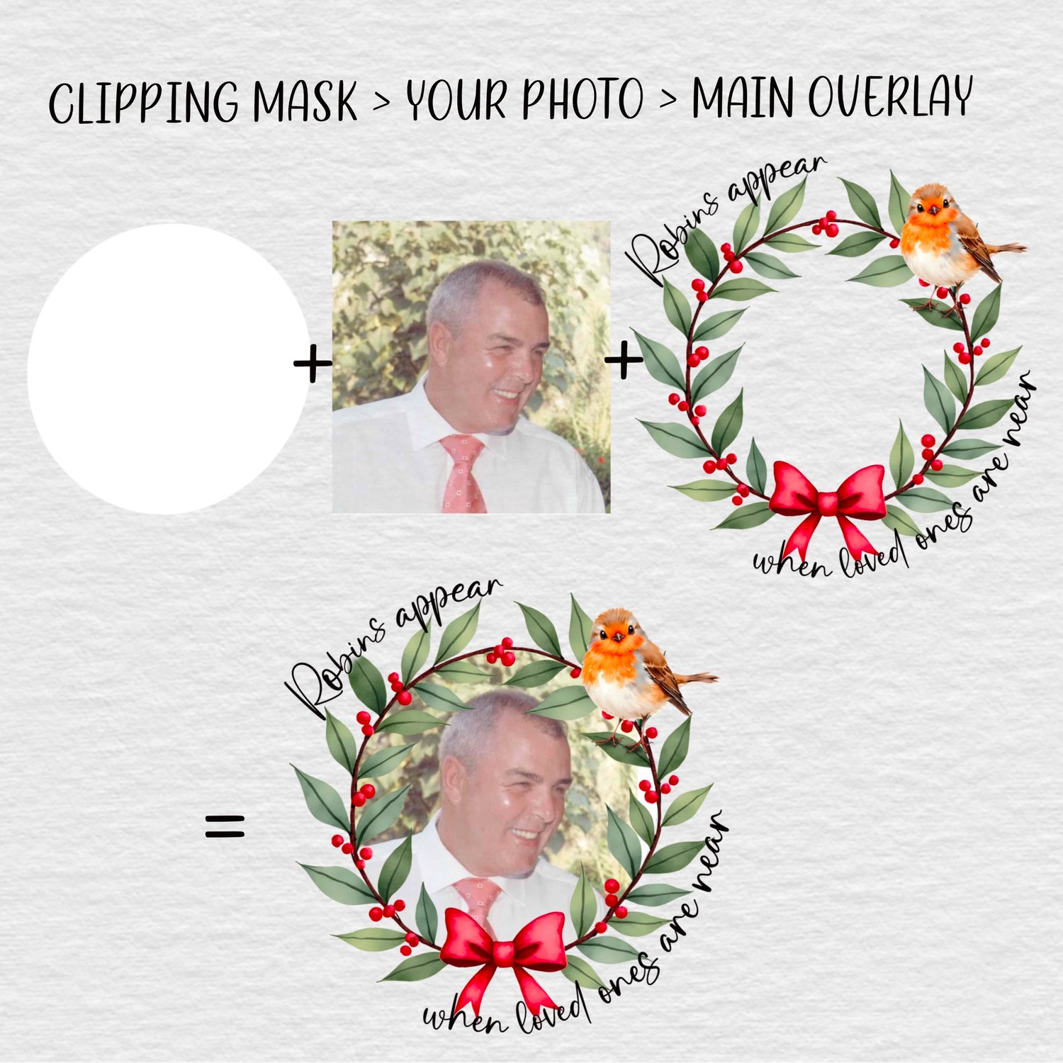 Robins appear when loved ones are near, 2 PNGs, blank circle and overlay design, instructions included