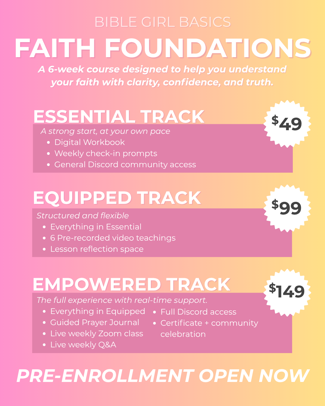 It’s a 6-week journey with one core lesson each week, paired with Scripture, prompts, and access to our private Discord community.