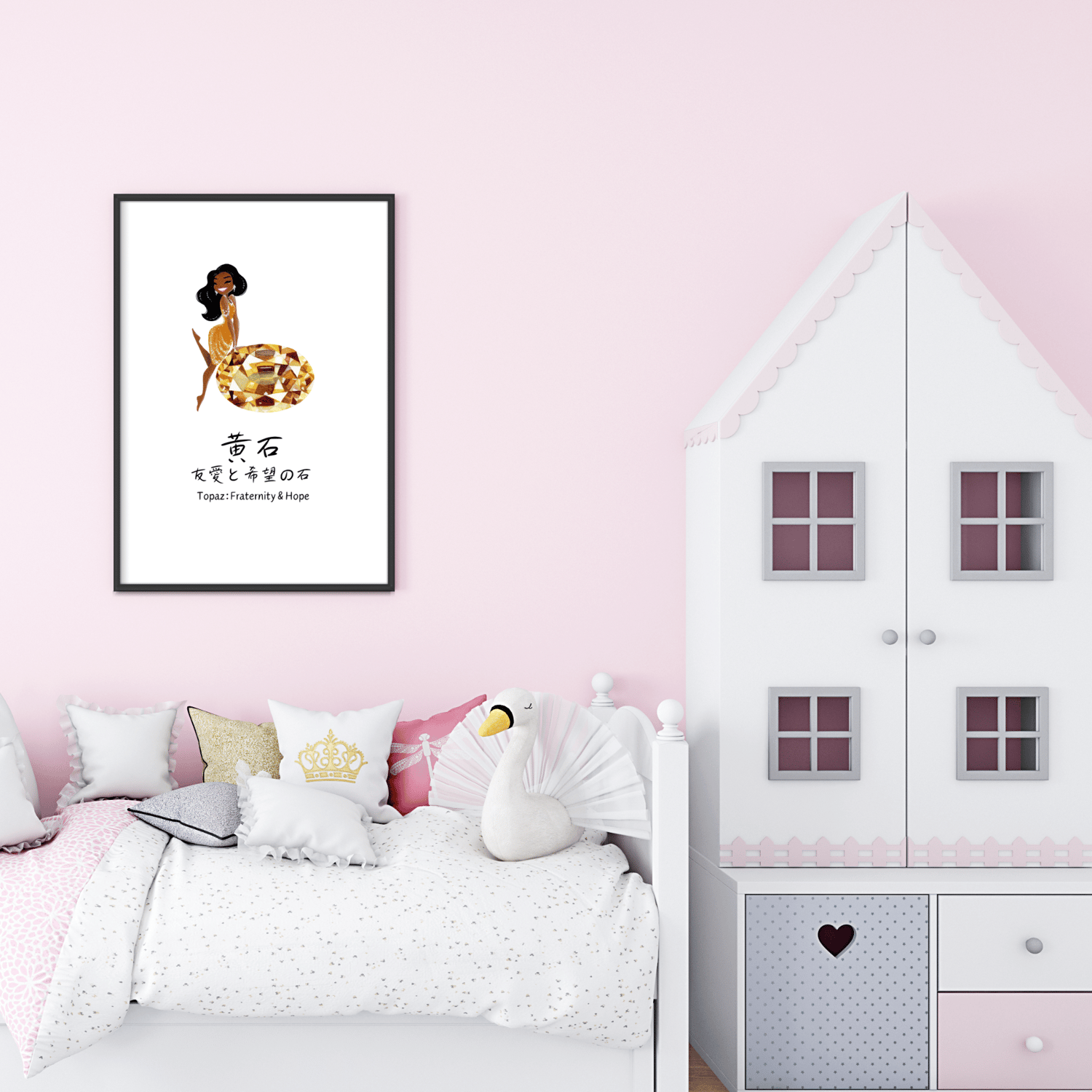 Printable November Birthstone Girl Wall Art, Japanese Topaz Quote Room Decor