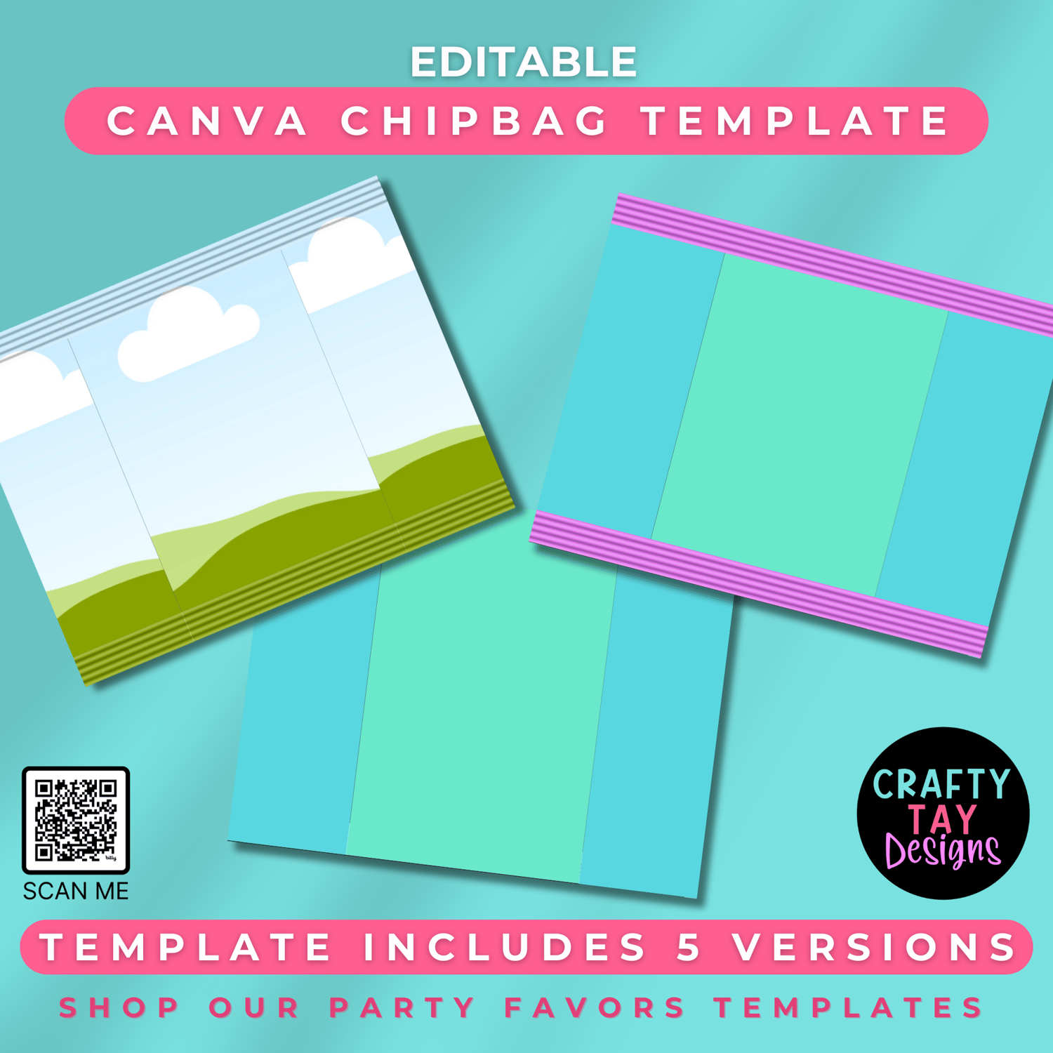 Editable Canva Chip Bag Template β 5 Versions | DIY Custom Party Favor Design π Instant Download | Fully Editable in Canva | Create Any Custom Chip Bag Design