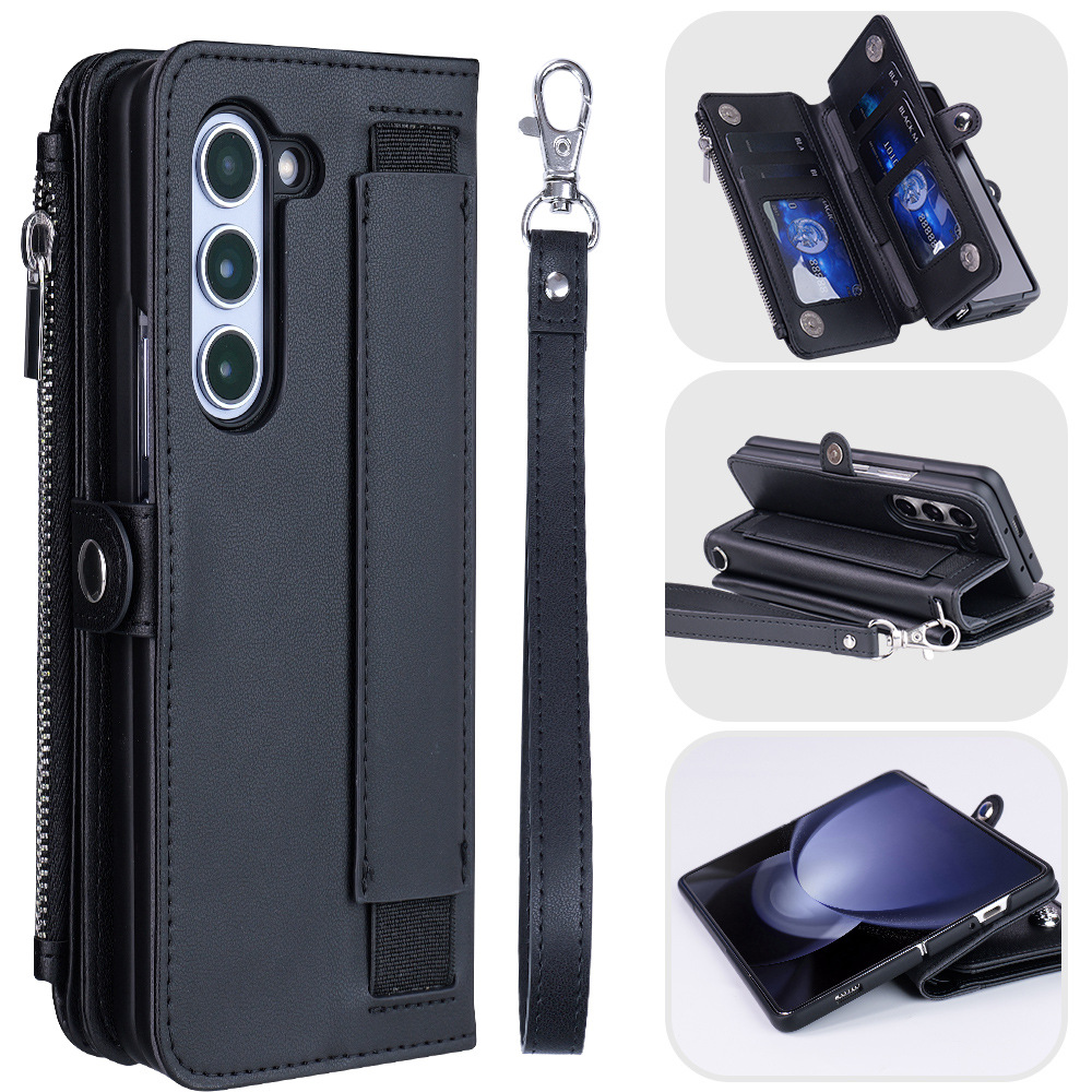 Hot Model 2023 Samsung Galaxy Z Fold 5 Phone Case Cover Wallet Leather Bag Case With Card Slot Strap Stand Full Protection