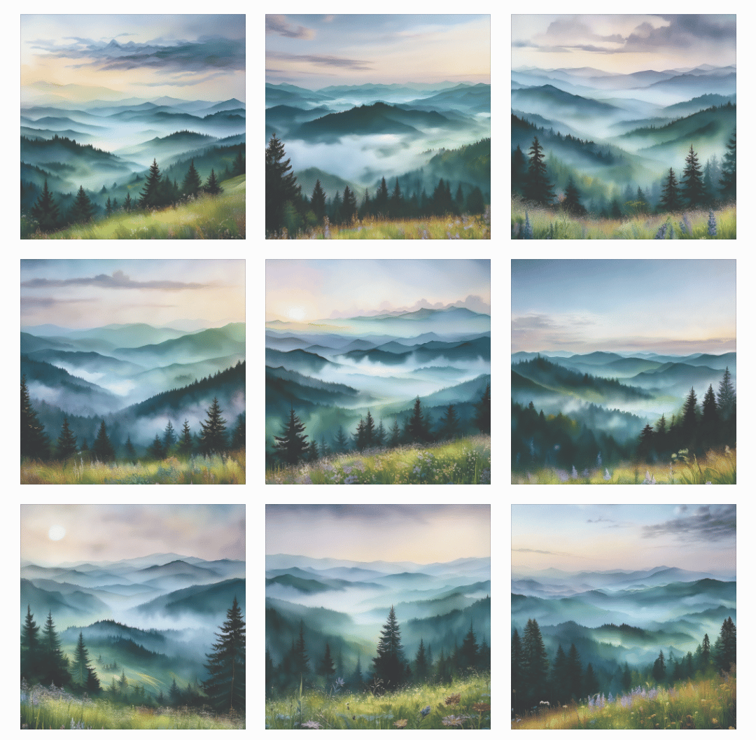 9 high-quality and distinctive. artworks.Appalachian Mountains Misty Pine Trees Art Painting, Vintage Landscape, Vintage Landscape Art Print, Country Field Wall Art, Botanical Art Poster, Appalachian Mountains Forest Prints Pine Trees.