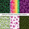 A beautiful collection of 6 Cannabis Watercolor Cannabis Leaves Seamless Vector Patterns.