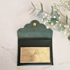 Pochette porte-monnaie/porte-cartes en cuir vert forêt & or