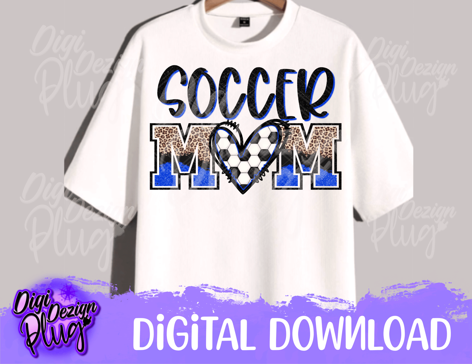 Soccer Mom Png- Blue Soccer Mom Cheetah Print- Digital Download