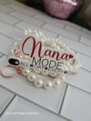 Crafted from high-quality plastic, this keychain is durable and lightweight, making it a practical and stylish addition to your everyday essentials. The playful design features the phrase "Nana Mode" in a fun, vibrant font, adding a touch of personality and warmth to your keys, bags, or anywhere you choose to attach it.