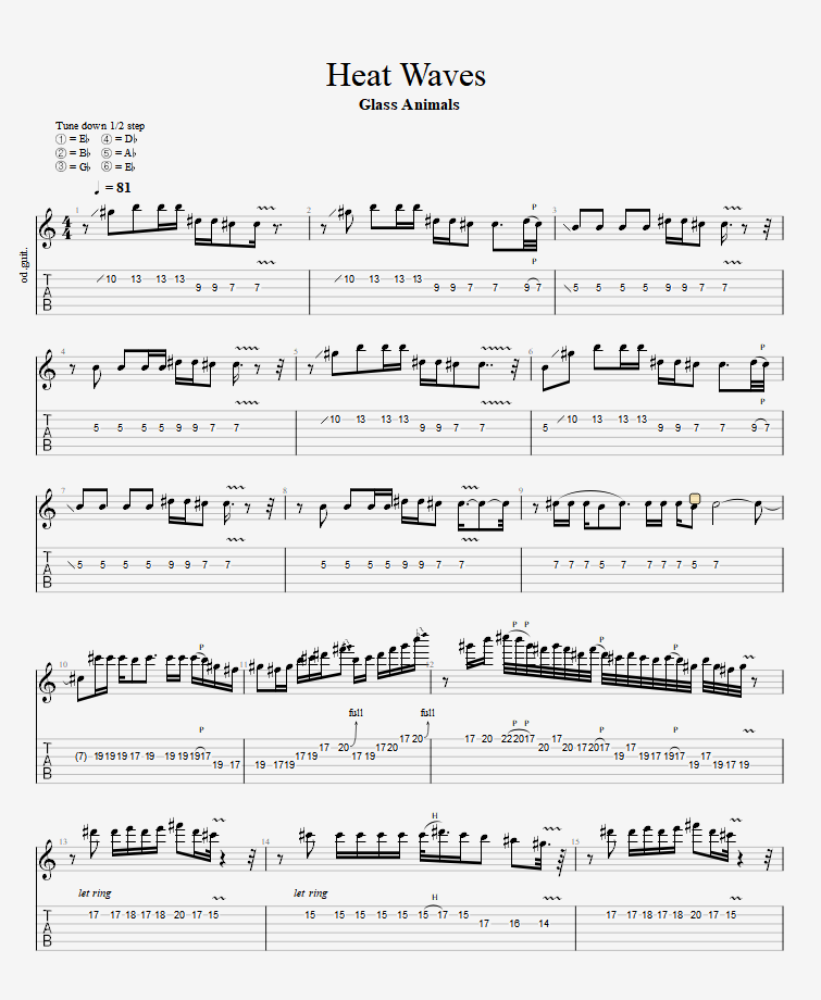 Guitar Tab pdf download for Cover of Heat Waves by Robbyg