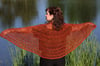 This semi-circular shawl is inspired by the riders of the Tour de France. The lace patterns show the different shapes that groups of riders take during the race: diagonal lines in a crosswind, a pointed arrow when in hot pursuit, and a long winding string when climbing tough mountains. The shawl finishes off with bicycle wheels (adapted from Barbara Walker’s Cogwheel pattern).