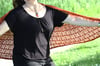 A small shawl can be knit with one skein of fingering weight yarn (approx. 1 set of “wheels”). The sample shawl was knit with almost two full skeins (800yds) of Tosh Sock in Saffron.