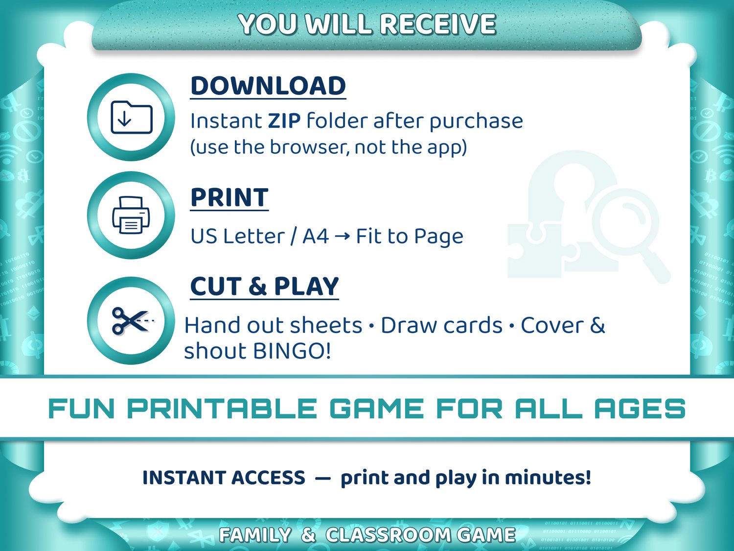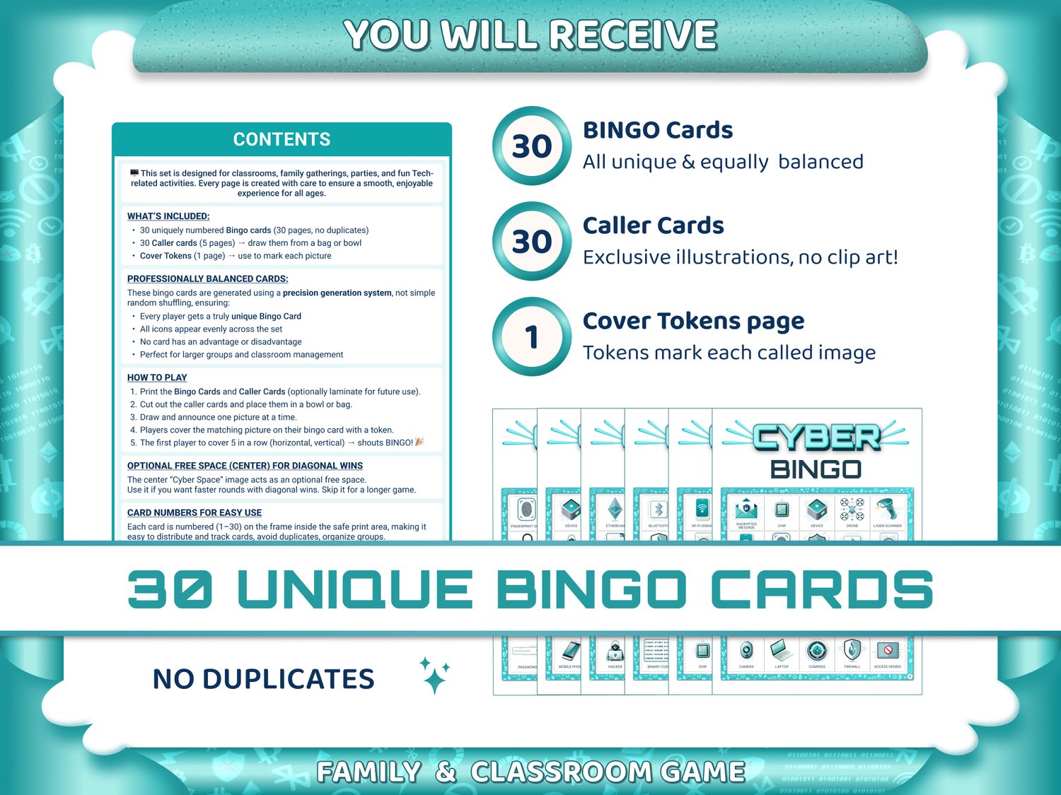 β’ 30 Unique Cyber Bingo Cards (printable PDF)