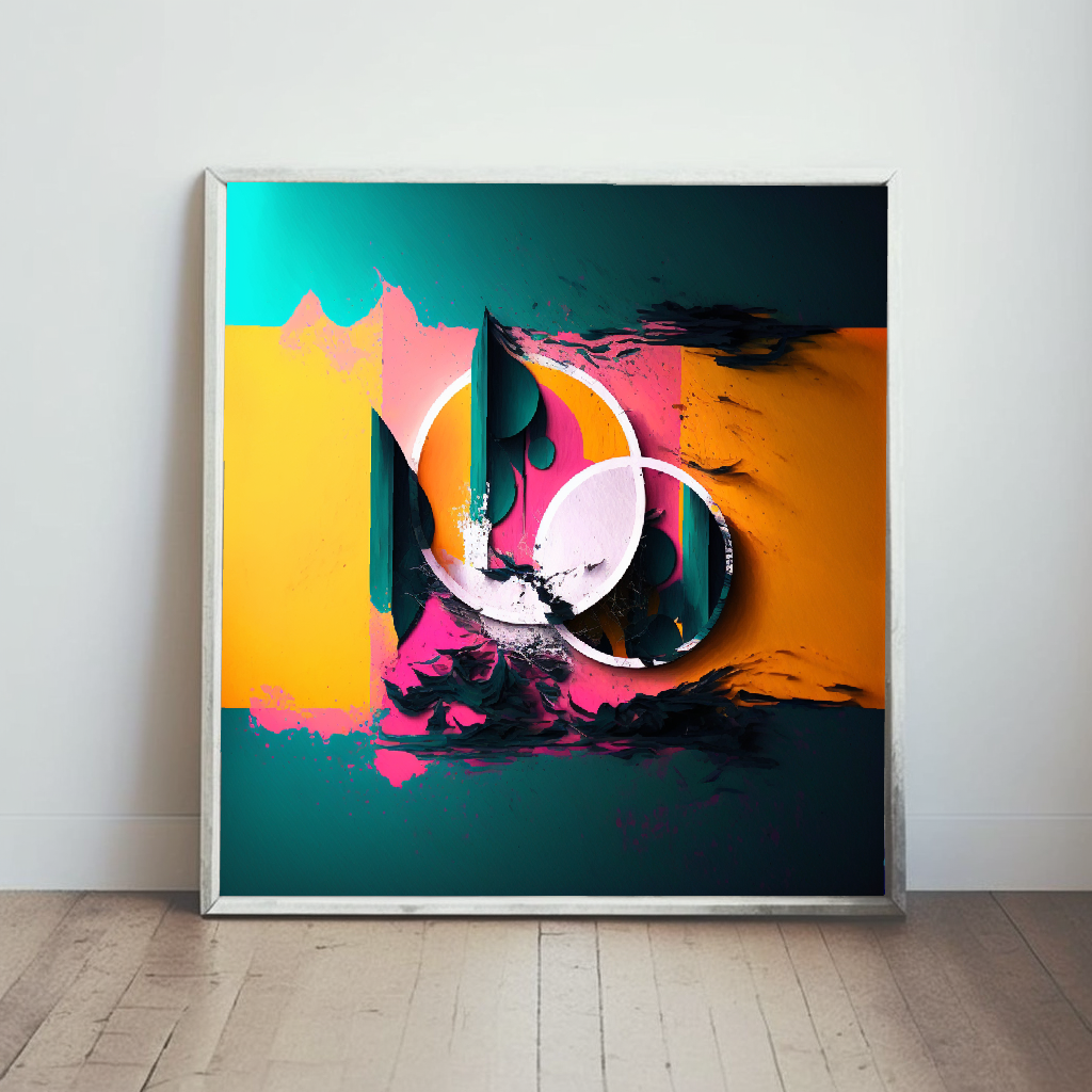 Instant Art Digital Download Abstract Shapes Green Orange Vibrant Decor Minimalist Square Print
