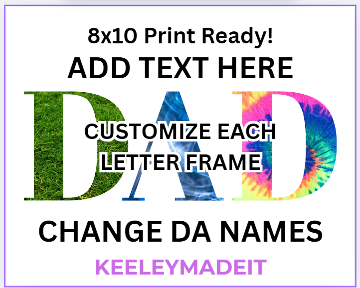 Each letter of D A D is a photo frame - add photos, patterns, textures, etc.