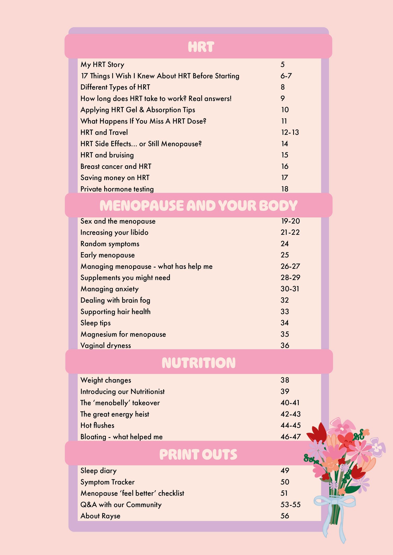 I have also worked with a nutritionist to cover things you should be eating now and have included some really helpful print outs to help you with sleep and tracking perimenopause symptoms.