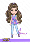 Instant digital download of our Cute Brunette Ava doll PNG and Watercolour Sparkle Background (10 PNG’s included one)