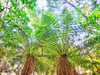 Looking up at the sky through beautiful ferns in the Waitakere Bush in the North Island of New Zealand.