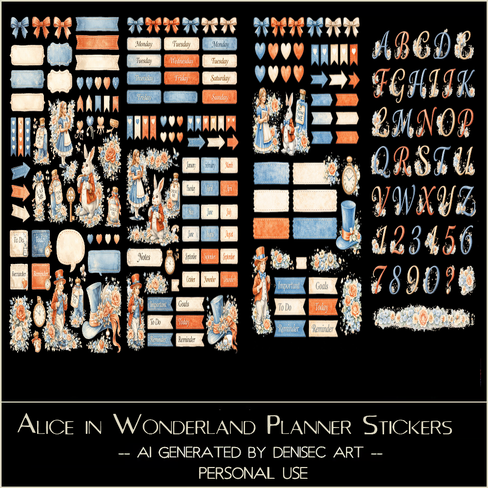 3 Times a a4 Sheet (3508 x 2480) Planner stickers and 1 a4 Sheet with bonus Alpabeth