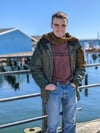 scarf next to some lobster pots in Gloucester, MA, where my son lives.