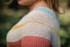 Knitted seamlessly from the top down in garter stitch and with short-rows shaping on the stripes.