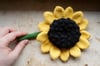 This big sunflower made in chenille or velvet yarn can be either a pillow for a child or a large fidget toy for an adult. A small version made in thinner yarn can be a pocket fidget toy, a brooch or just a decoration for your house.The possibilities with this pattern are endless and you only need to sew the petals to the side of the flower, no need to weave in all those ends.