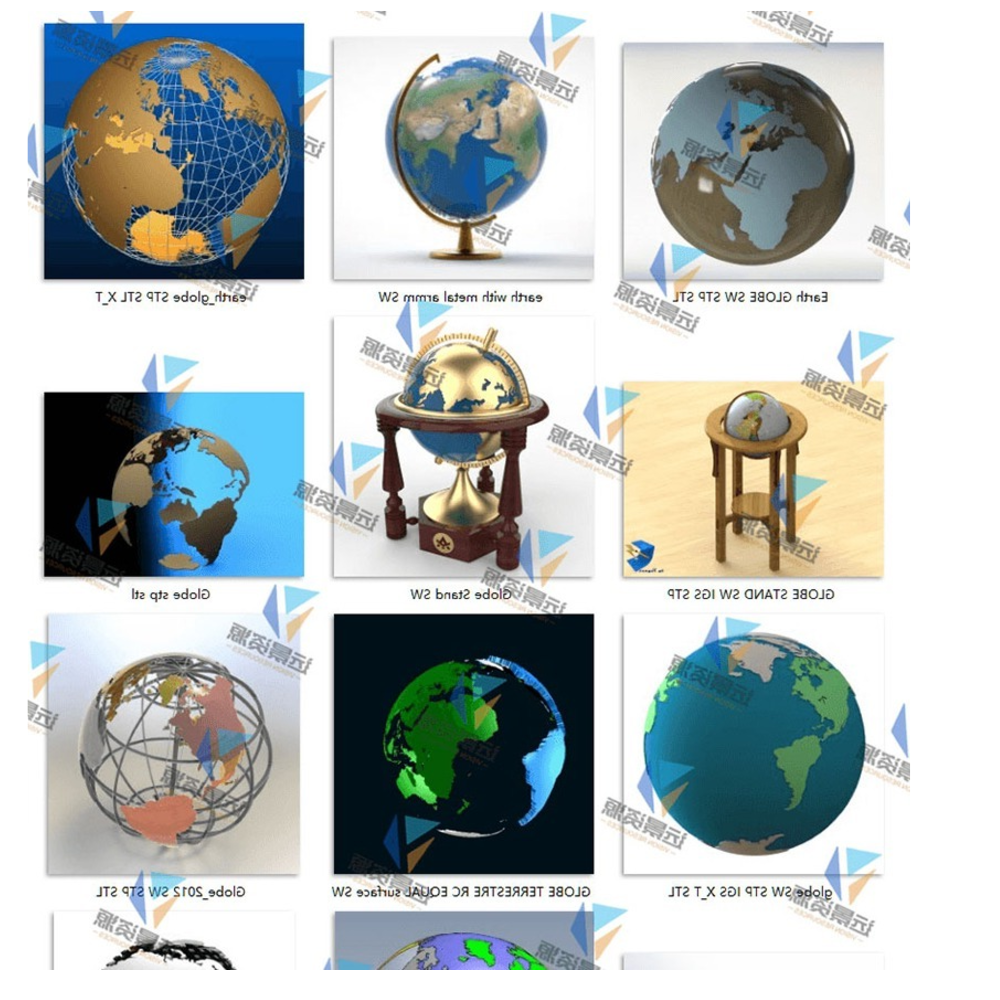 12 sets of 3D models of the globe in SolidWorks format