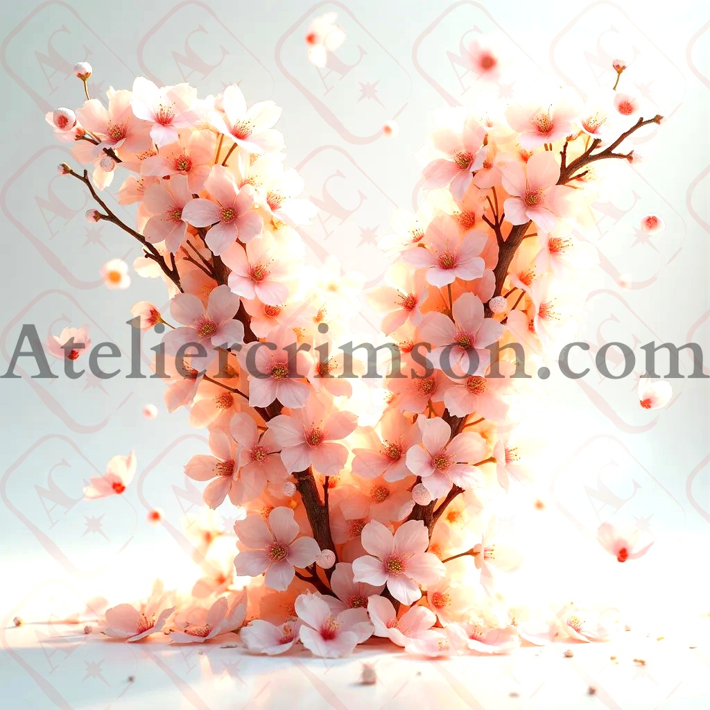 The letter V zen cherry blossom Download Now this high quality AI-generated image, perfect for adding a touch of tranquility and creativity to any space.