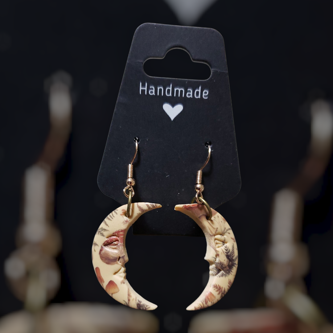 Polymer Clay Half Moon Mushroom Dangles