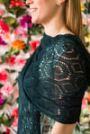 The lace stitches are only worked on right-side rows. The lace pattern is available in both written and chart form.