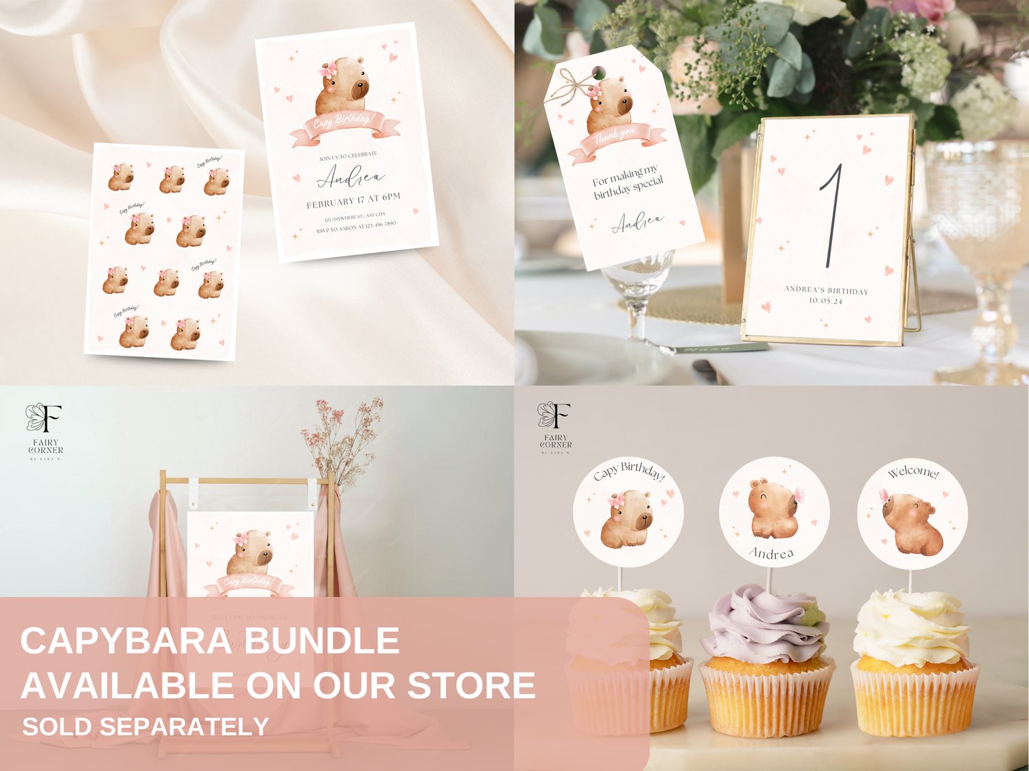 Capybara Thank You Card, Birthday Template Design