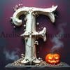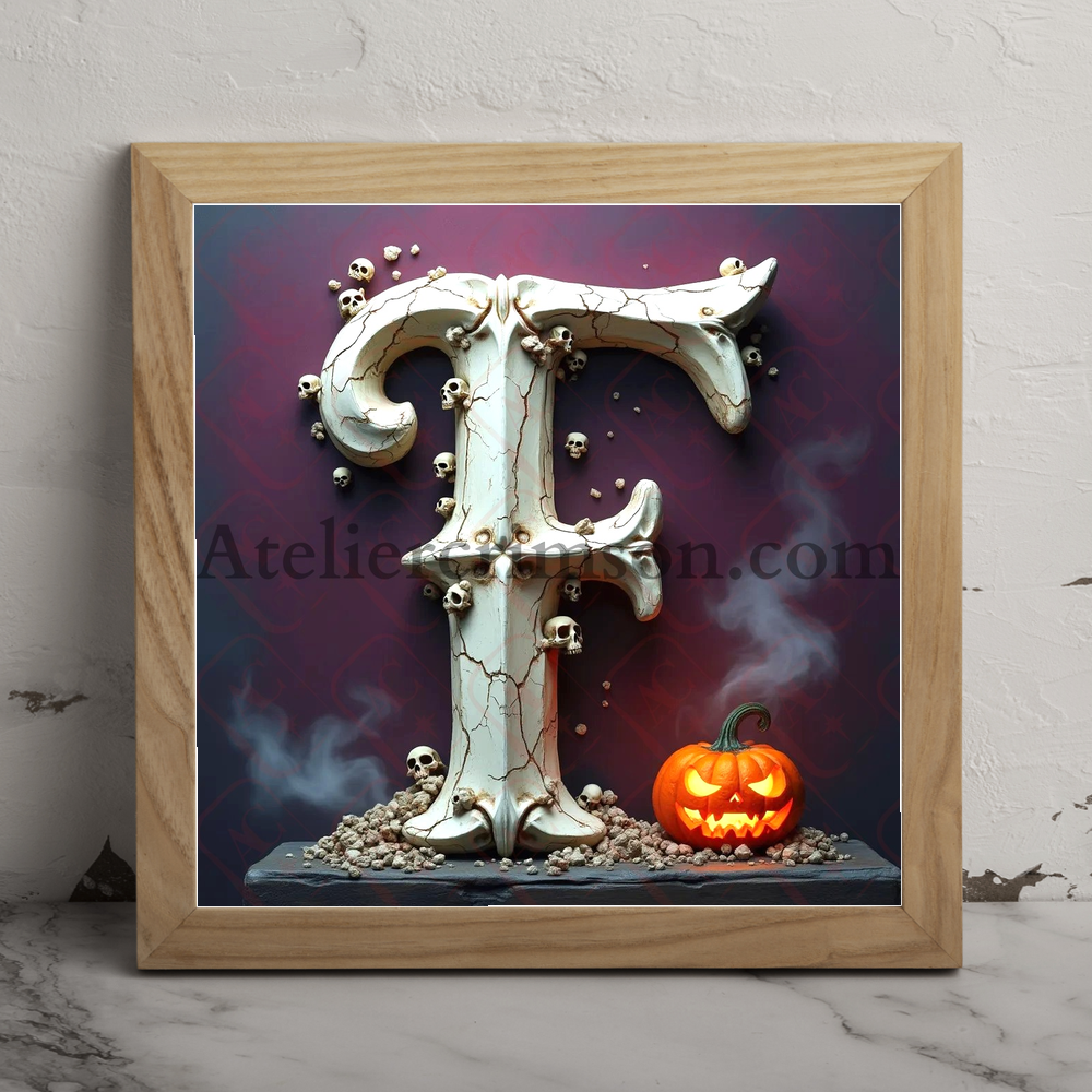 The letter F spooky character skull Halloween Discover our Spooky Skull Alphabet! Each character is a 3D masterpiece of bone and shadow. Perfect for Halloween designs, gothic projects, or unique wall art. 💀✨ Click to download this high-resolution character and elevate your creations with haunting elegance!