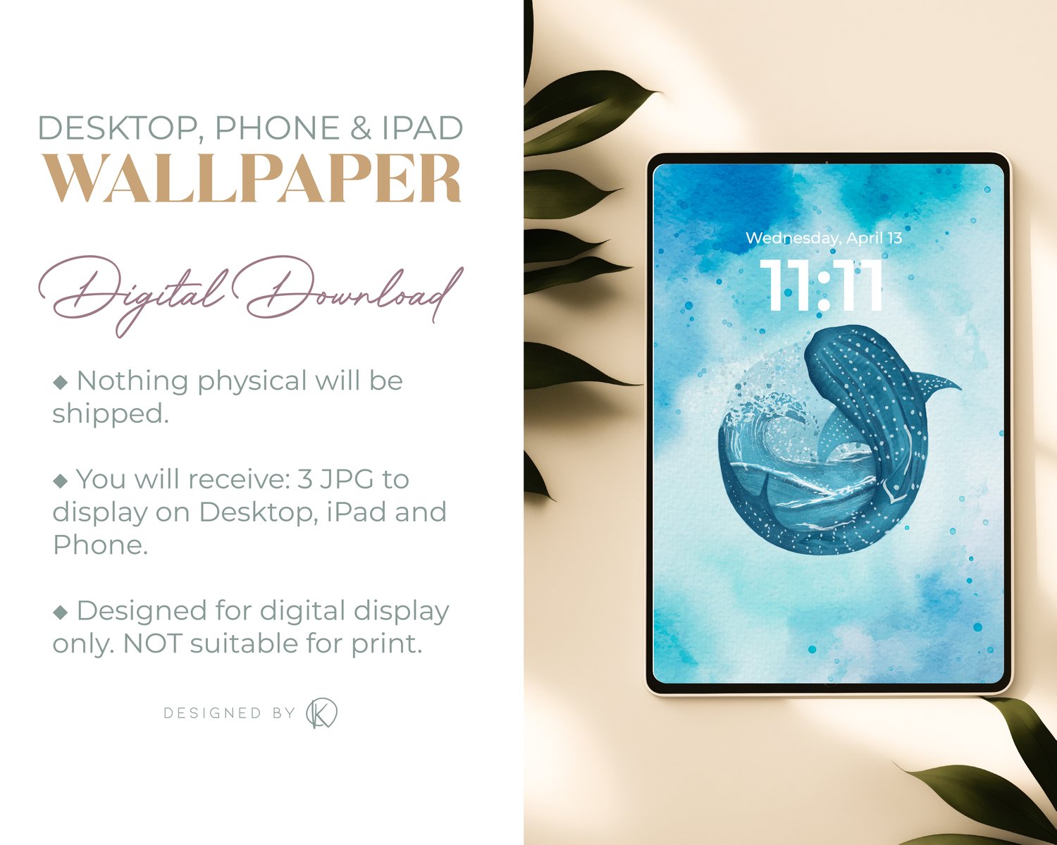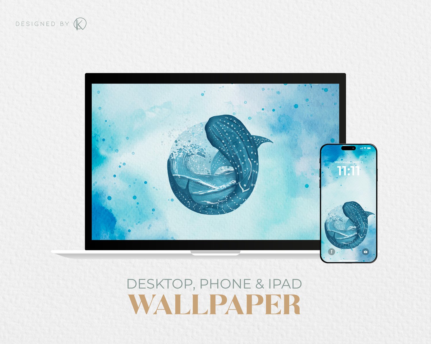 Whale Shark – Digital Watercolor Wallpaper Set (Phone, iPad & Desktop)