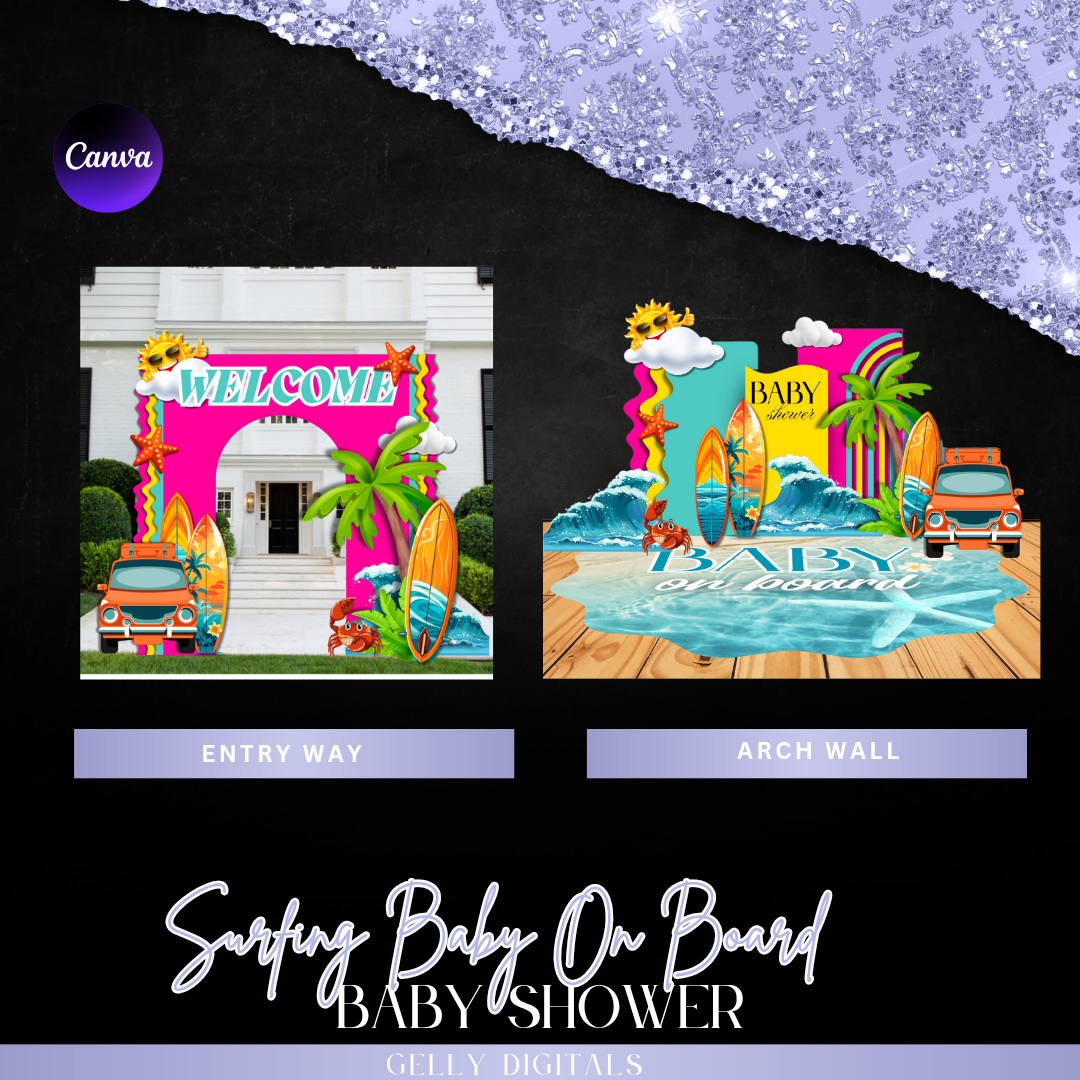 Complete your event with our adorable, easy-to-edit Baby Shower Templates — from entryway signs to arch wall, treat bag, plate, menu, hershey's bar, and floor wraps!