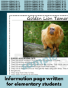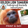 This nonfiction information page is full of facts about the Golden Lion Tamarin, an endangered animal that is found in a rainforest in Brazil. This informational page about golden lion tamarins is great for learning about endangered animals. It has all the information that students need for an animal report. No prep! Just print and go!