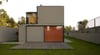 La casa se desarrolla en dos plantas, con un garaje que define la primera fachada y se integra con los muros perimetrales, creando un patio naranja que proporciona privacidad y transición desde la calle. La entrada principal se retranquea bajo un voladizo y conduce a un hall que se abre a un amplio salón con ventanales correderos hacia el jardín. La cocina se posiciona al norte, maximizando el uso del espacio limitado por la losa de hormigón que define la separación entre los pisos.