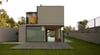 El diseño arquitectónico respondió a la complejidad del sitio dividiendo el terreno en dos niveles. El nivel superior mantuvo la cota original y preservó los pinos, eliminando los eucaliptos. El nivel inferior se niveló a la altura de la calle y se transformó en un jardín abstracto y plano, caracterizado por césped, gravilla, un cubo de granito y madera de Ipe. Un muro de hormigón de 2.5 metros de altura separa estos dos niveles y sirve de soporte estructural y visual para la vivienda, creando una barrera entre la casa y su contexto más inmediato.