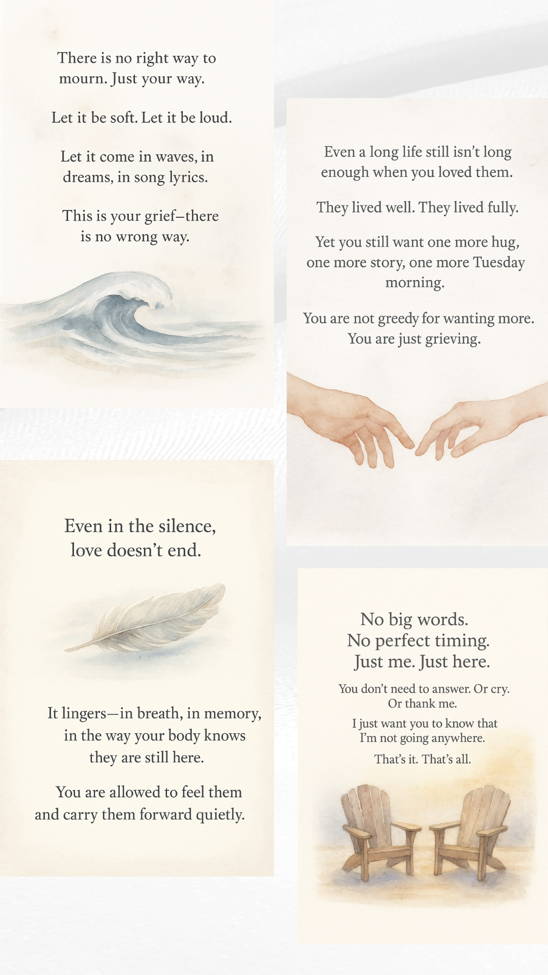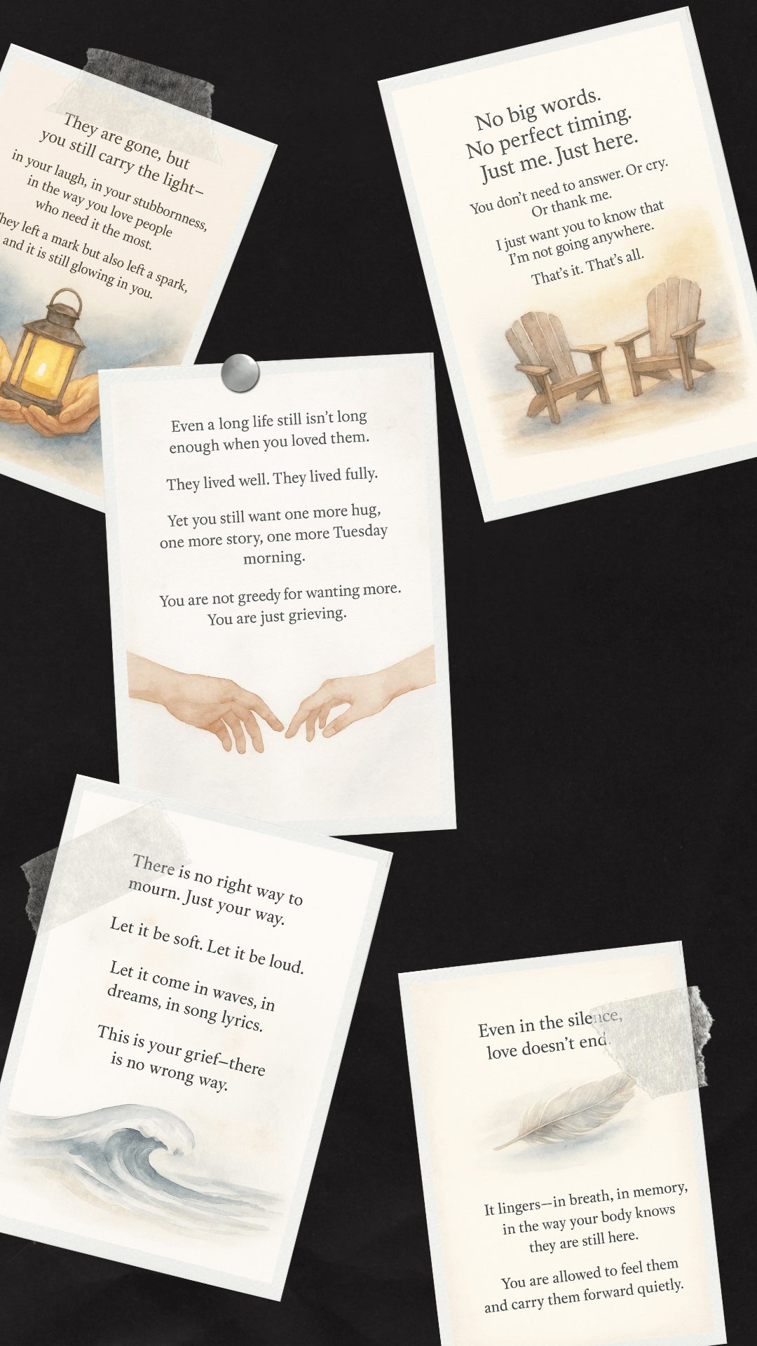 Grief doesn’t always roar — sometimes it hums quietly in the background. The Soft Ache Collection offers gentle, empathetic messages for those moments when you want to acknowledge the pain without pushing for cheer or closure.
