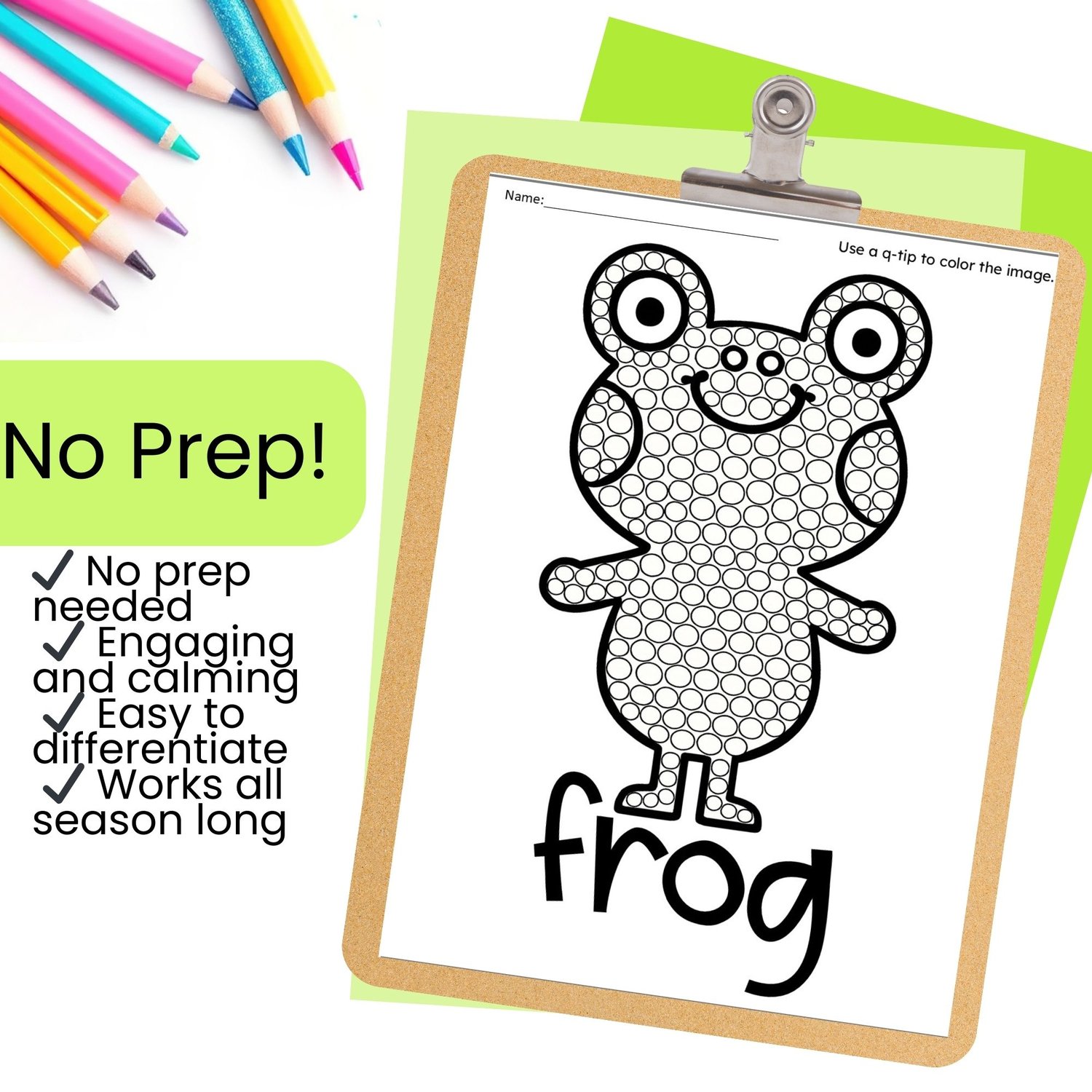 Each page is designed with clear circles for q tip painting, making it easy for little learners to stay on track.