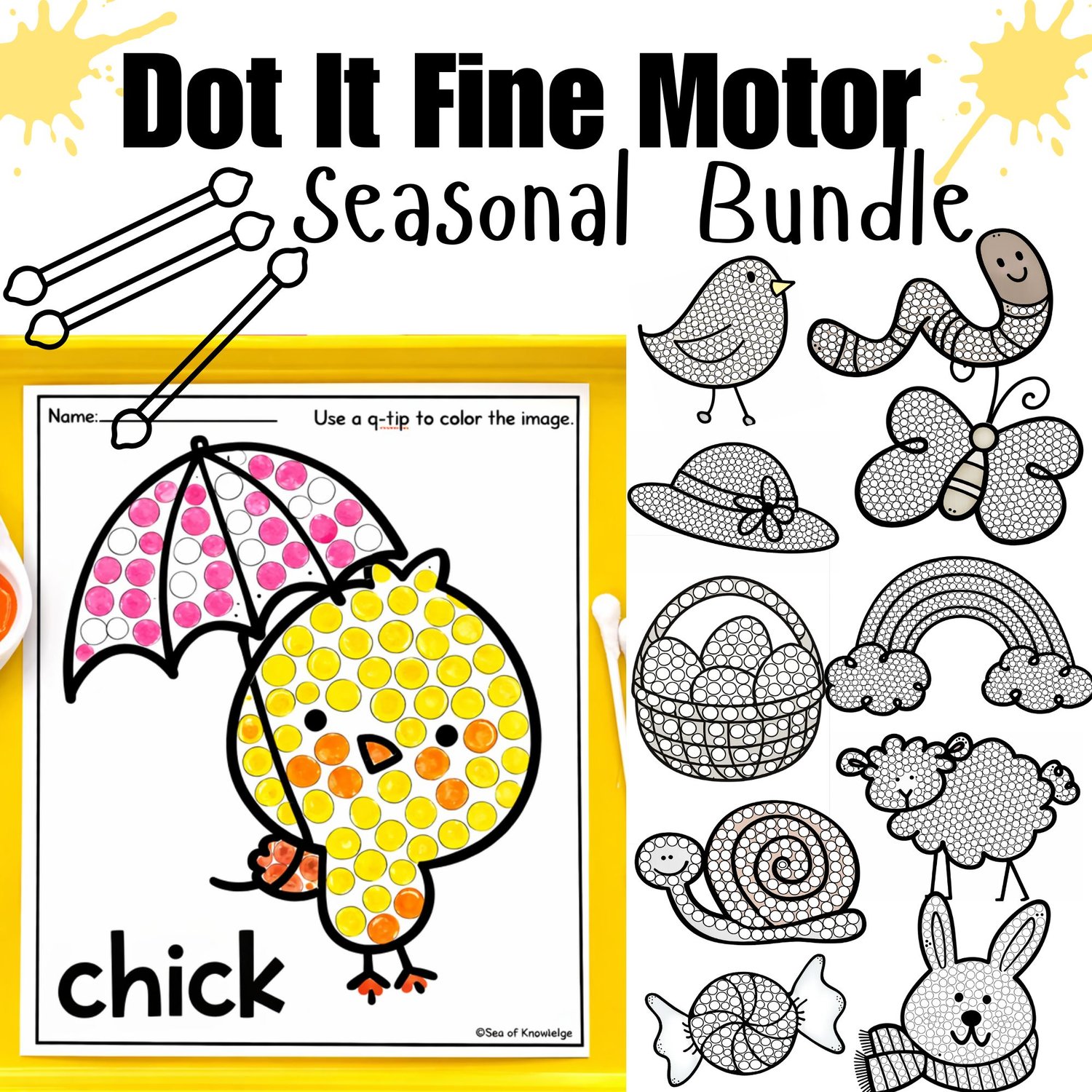 Q Tip Painting Fine Motor Set Bundle Spring Fall Winter Summer Cotton Bud Art