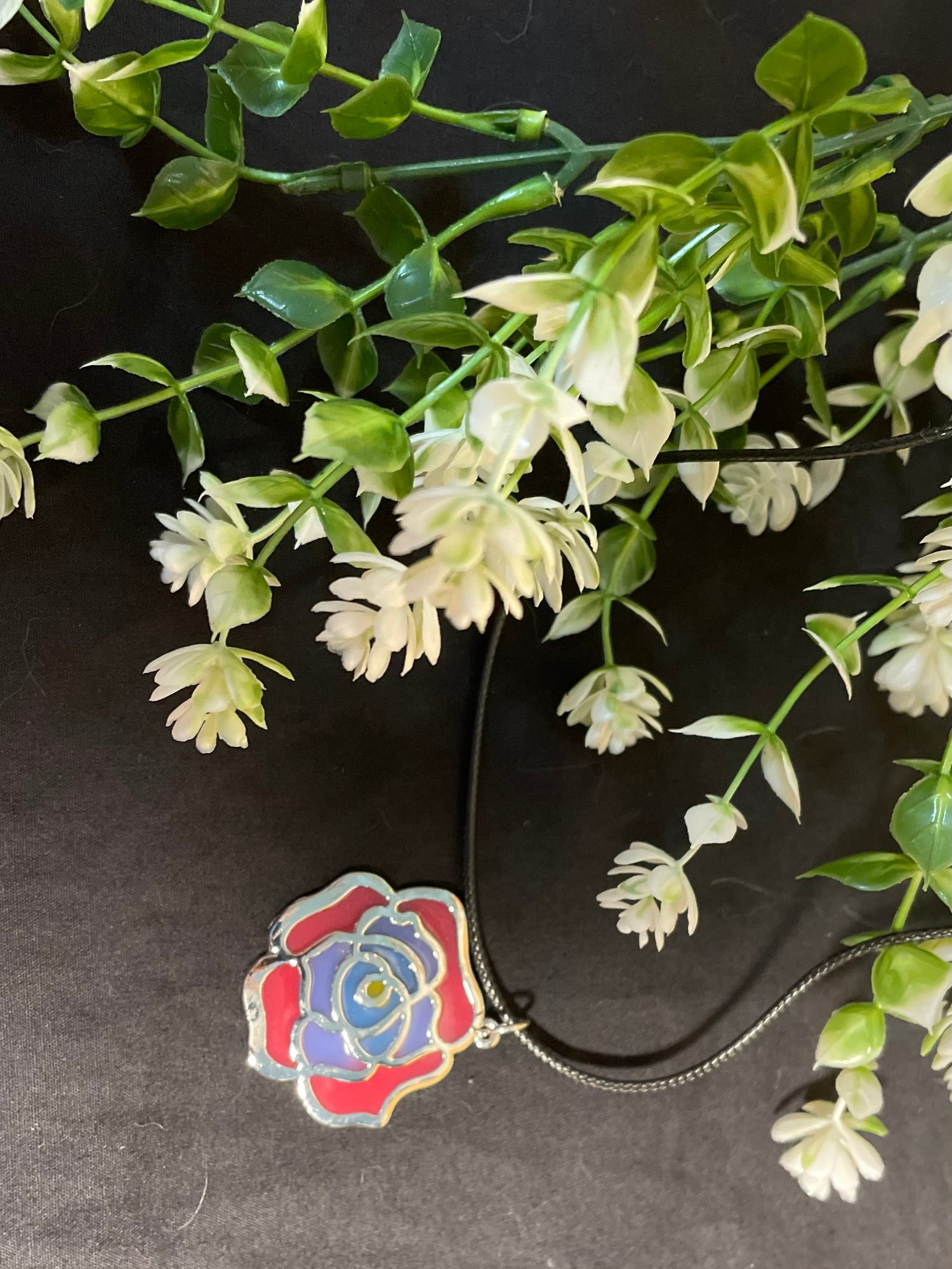 Hand made with red and purple resin.