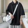 Short Sleeve Polo Shirt, Korean Style Trend, Polo Neck T-shirt with Relaxed Fit, Unique Knitted Pattern for Men's Summer, Beautiful Design, Distinctive Sleeves