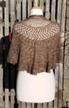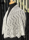 This pattern can be knit in any lace weight yarn. The Solstice Yarns Persuasion Lace is a robust yarn which keeps its shape beautifully once blocked; the Ripplescraft variegated yarn, being predominantly wool, will contract slightly once blocked and dry. Both yarns have exceptional drape and lustre. As always, when substituting yarn, be sure to knit a swatch to check that you are able to get the right gauge for the pattern. Suggested yarn substitutes can be found at https://yarnsub.com/