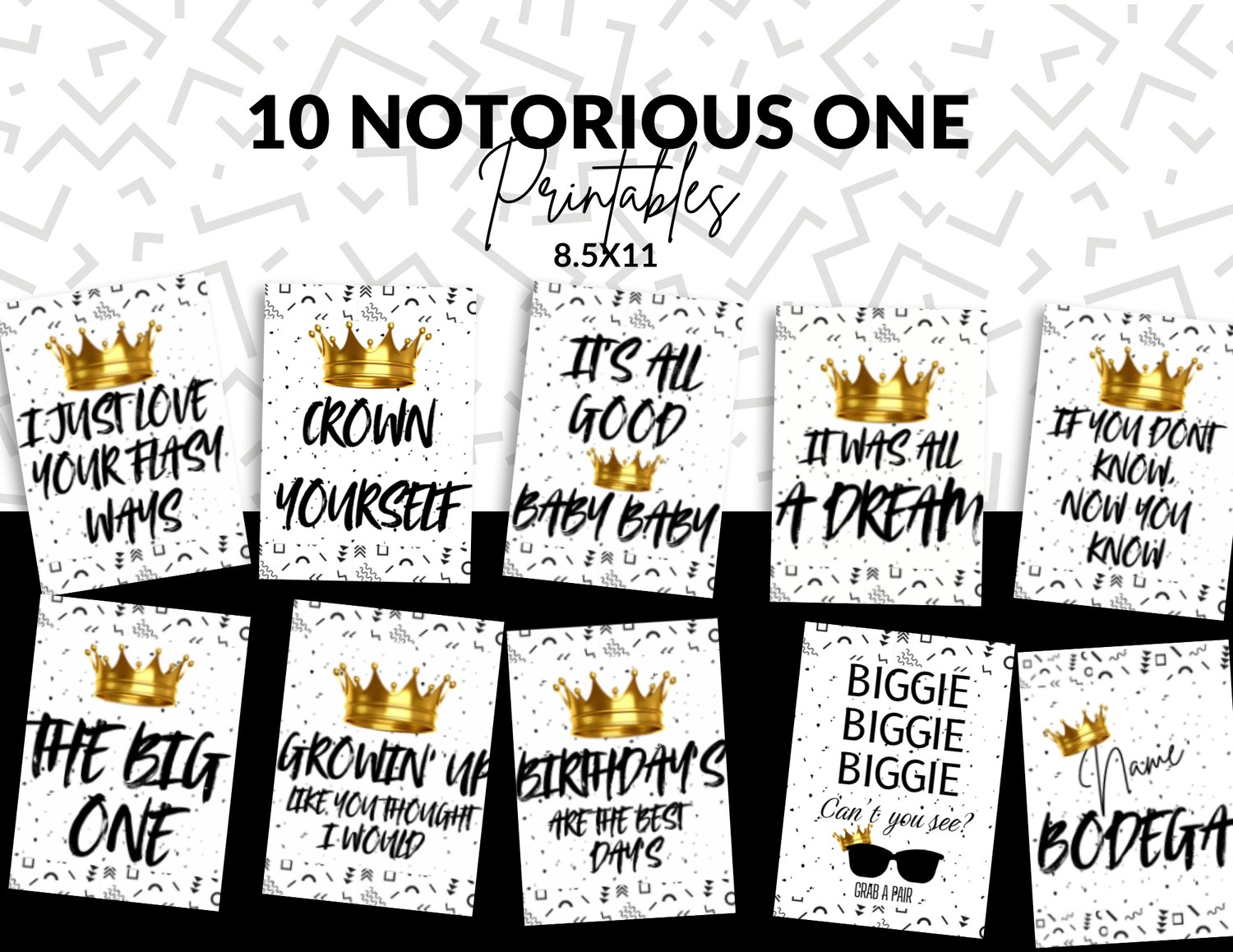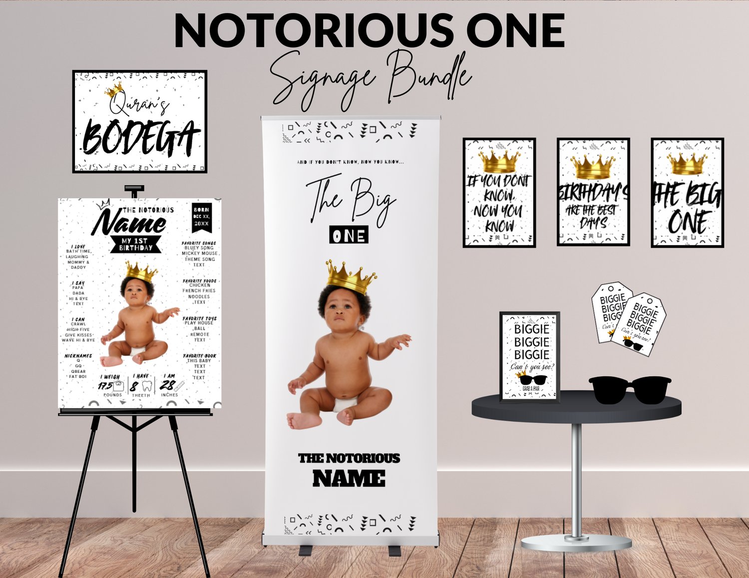 Celebrate your little ONE in iconic 90s Hip Hop style with this Notorious ONE MEGA Birthday Bundle! This all-in-one party package combines statement poster signage and custom treat & favor printables to create a bold, coordinated, and unforgettable first birthday celebration.