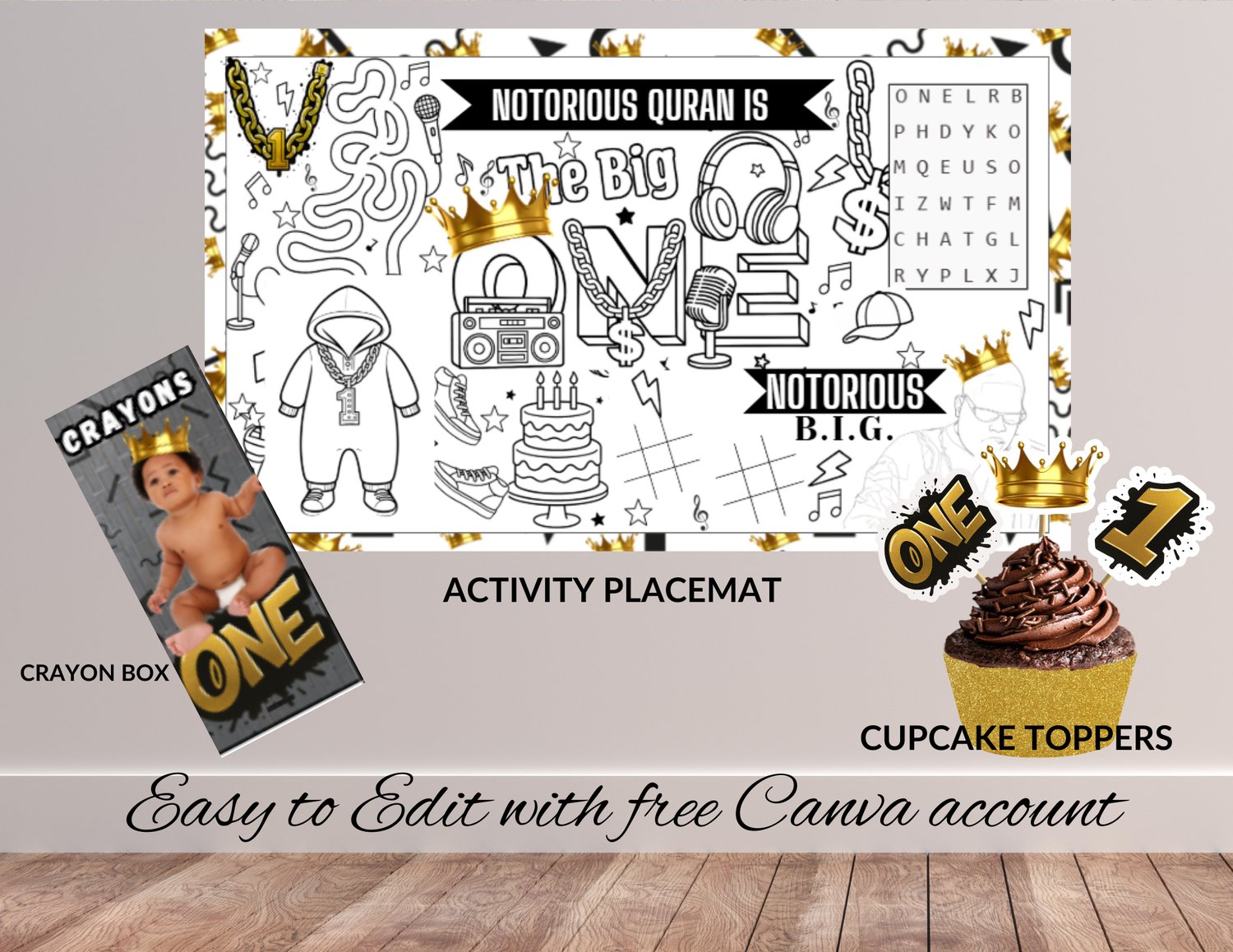 🎤 90s Hip Hop 1st Birthday MEGA Bundle | Notorious ONE Party Decor, Posters & Treat Favors | Canva Editable | Digital Download