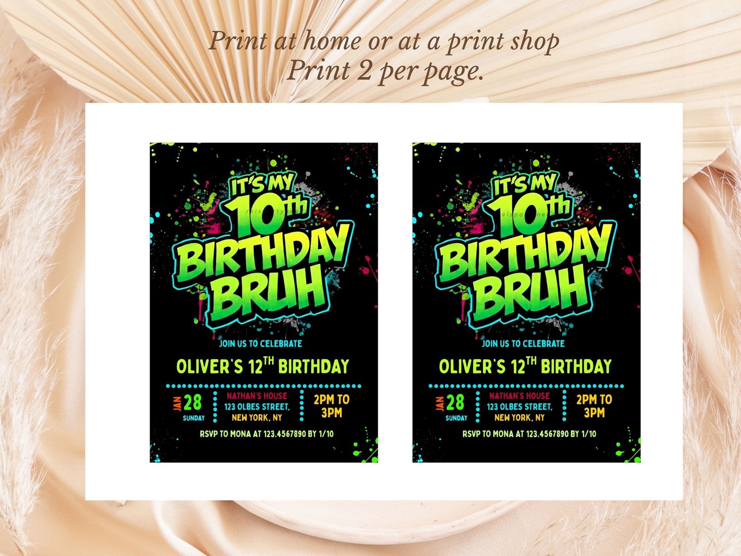 Boy 10Th Birthday Invitation, Bruh Invitation, Bruh its my birthday invitation