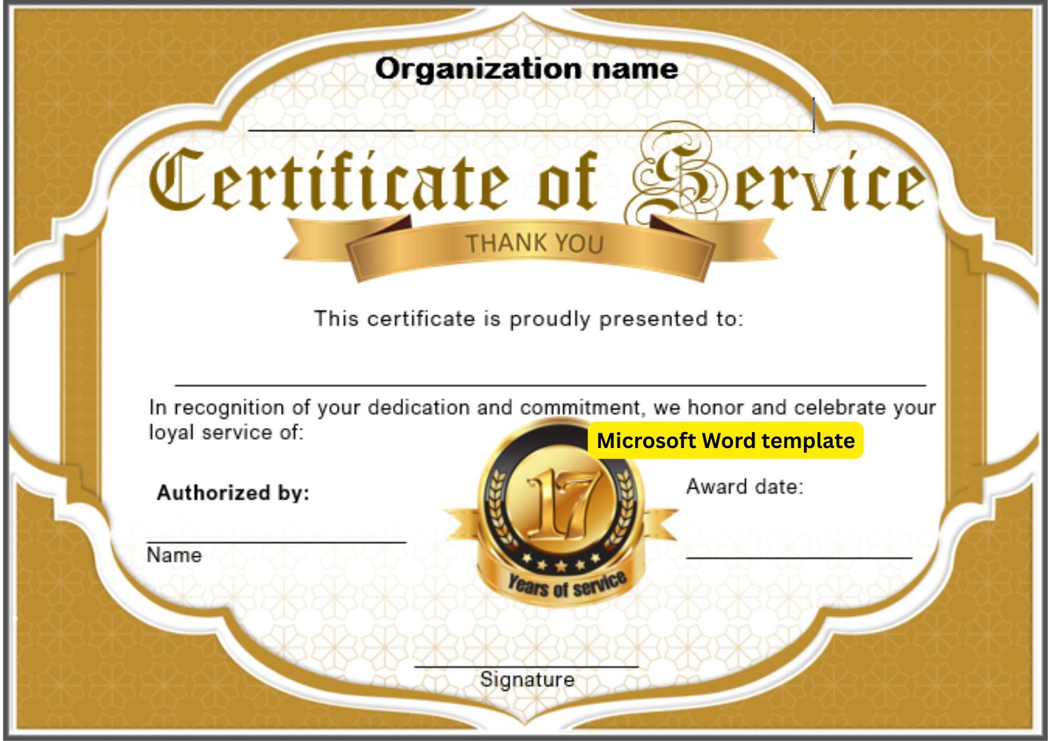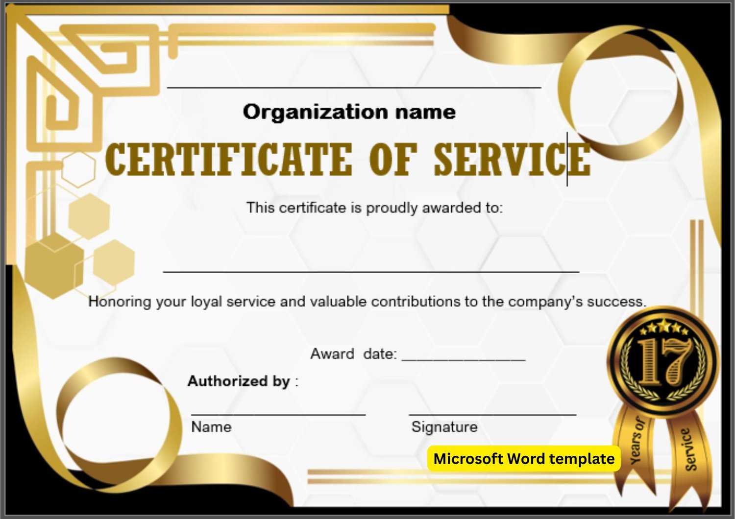 Elegant digital Microsoft Word certificate template. Perfect for recognizing excellence and celebrating achievements. Easy to customize – you can change the award title, edit any text, and personalize names. This design comes in various versions, including Years of Service (1–47 years), Employee of the Month Appreciation, Best Supervisor Recognition, Certificate of Achievement – Top Performer, Certificate of Excellence – Best Seller, and Employee of the Year.